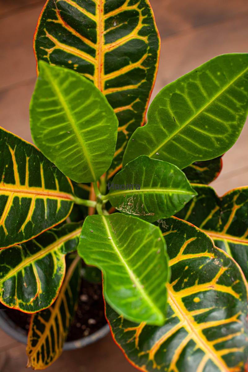 Кодиеум «Петра» достаточно быстро растет и охотно ветвится, что позволяет ему даже в солидном возрасте выглядеть пышно и интересно.