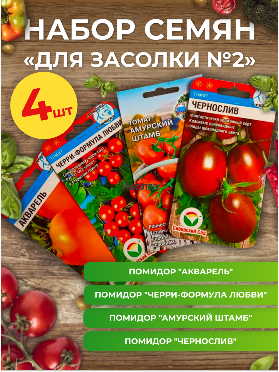 Набор сортов семян помидор, хорошо подходящих для свежих салатов и заготовок на зиму.